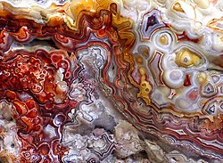 줄무늬 마노는 실렉스 (silex) 족( 칼세도니 종)에 속하며, 암석의 움푹 들어간 곳에 규산질 퇴적층이 퇴적되어 형성됩니다. 이러한 형성 방식으로 인해 다양한 색상의 줄무늬가 나타납니다. 조개껍데기 모양의 쪼개짐으로 인해 매우 광택이 나는 상태가 될 수 있습니다.