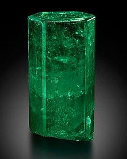 에메랄드는 녹색 베릴의 한 종류이며 알루미나와 글루시나의 규산염으로 구성되어 있습니다. 구조적으로는 밝은 녹색을 반사하는 육각형 결정입니다. 에메랄드는 고도로 연마되어 변성암 , 화강암 , 운모 편암에서 발견됩니다. 가장 훌륭한 표본 중 다수가 남미 보고타의 무조 에서 발견되었지만 고대인들은 이집트에서 이 돌을 얻었습니다. 전 세계에서 에메랄드를 함유한 모든 지역 중 레반트와 가까운 곳은 이집트 남부 동부 사막에 있는 몬스 스마라그도스 라고 불리는 일련의 지역뿐입니다 . 이 에메랄드 광상은 시카이트 의 노동자 캠프에 남아 있는 유물을 바탕으로 프톨레마이오스 시대 이전에 처음으로 개발되었습니다 . 최근 발굴을 통해 이 정착지의 건립 시기를 기원전 3세기로 확실하게 추정할 수 있었습니다. [ 5 ]